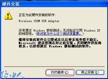 (7)若在安装过程中出现了关于Windows徽标测试的对话框;