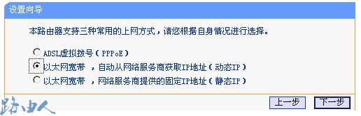 登陆TP-LINK路由器的WEB管理界面,通过“设置向导”选择“以太宽带,自动从网络服务商(例如:中国电信)获取IP地址(动态IP)”,设置完成后,到运行状态下看WAN口是否获取IP地址,获取到了的话,然后在IE地址栏里输入任一网址,都会弹出认证的对话框,填入网络服务商提供的用名和密码就可以了。