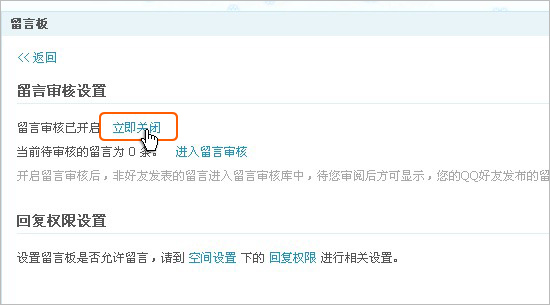1、留言审核功能开启前,请您确认您的回复权限是“任何有访问权限的人都可以回复”,设置回复权限方法:登录QQ空间设置回复权限里操作;