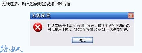 (2)若无线路由器中设置的是WEP加密,出现上面对话框是因为您输入的密码长度不符合要求,请确认一下您的密码。
