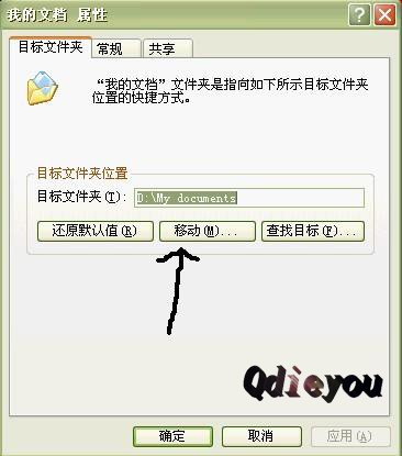 点击箭头所指!就可以把我的文档的默认路径移动到其他盘了