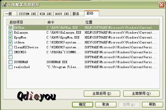 防火墙,rfw开头的是瑞星防火墙,kfw可能是金山的,呵和。输入法98/me/2000输入法是internat,XP/2003输入法是ctfmon。