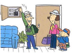 6、离家或睡觉前要检查电器是否断电,燃气阀门是否关闭,明火是否熄灭。