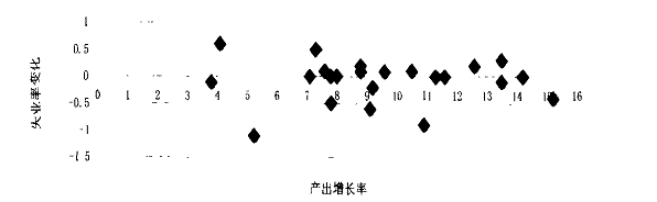 图1  失业率变化与产出增长率散点图