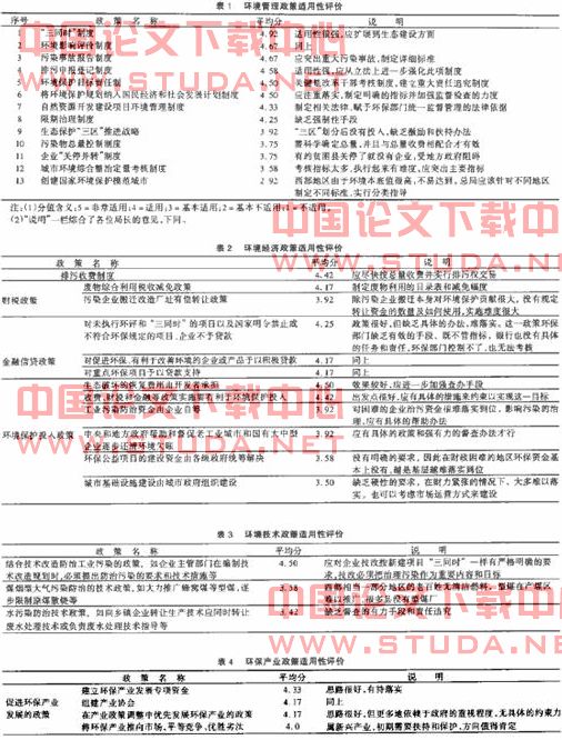 2.1对现行环保政策适用性的评价(见表1、2…34 5)