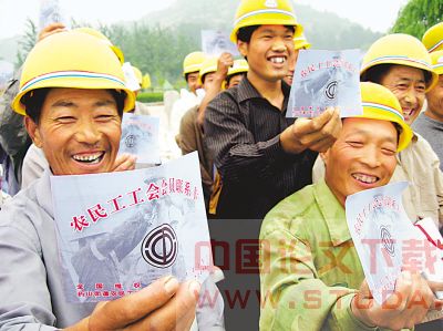 在济南务工的5000名外地农民加入当地工会组织,兴奋不已。江 浩摄