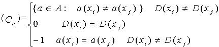 x= 对象p、q的可区分属性集;