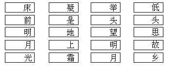 (12)唐朝诗人李白的《静夜思》,每个字都可以组成一个成语,你能在下面的空格里各填3个字,组成20个成语吗?